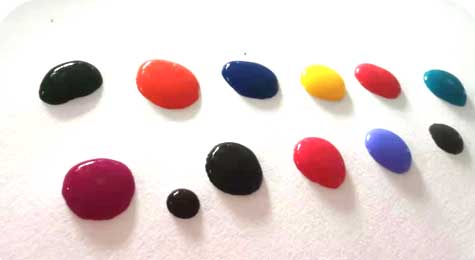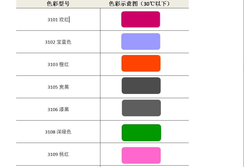 1).感溫變色顏料基本色之間的互配:可以獲得許多過(guò)渡色↔無(wú)色的變色效果。