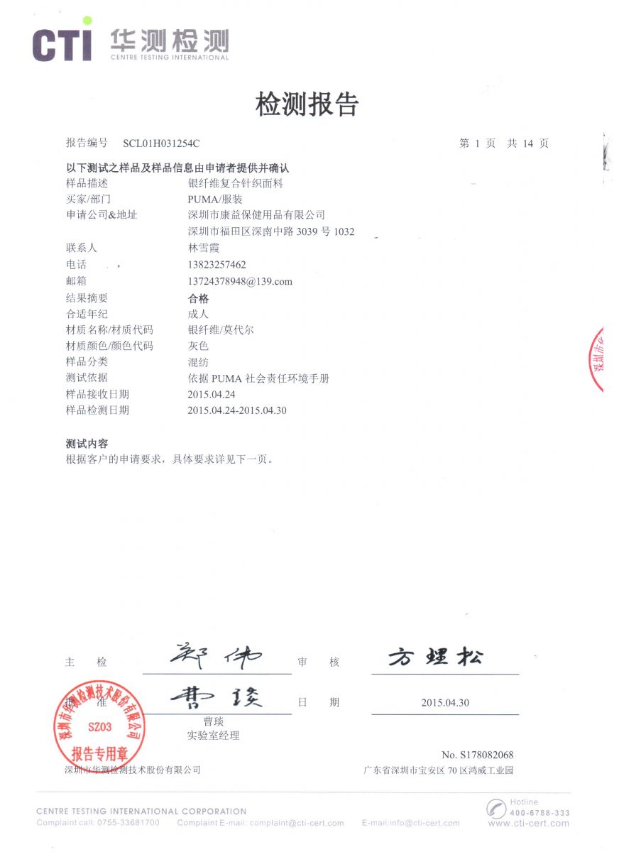 康益 銀纖維針織復(fù)合布環(huán)保檢測報告中文版