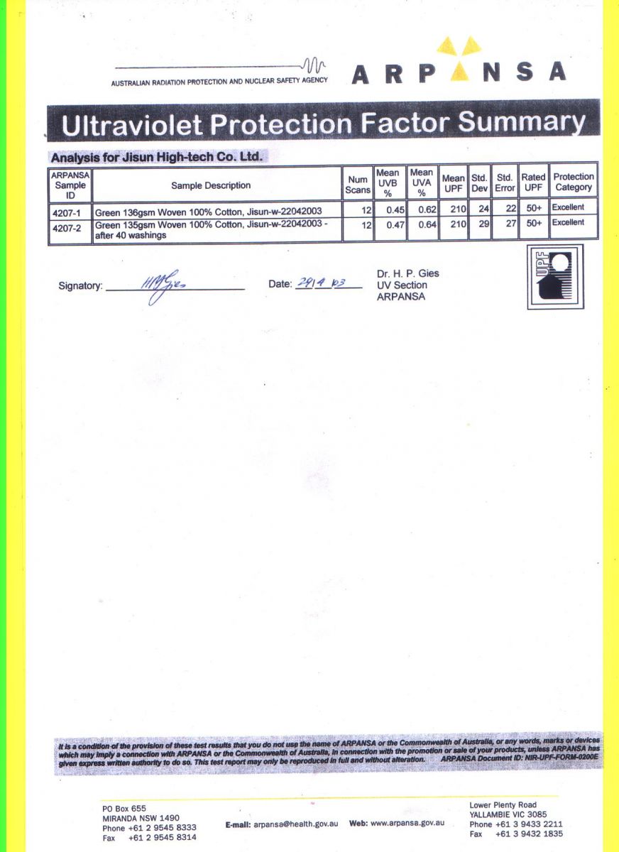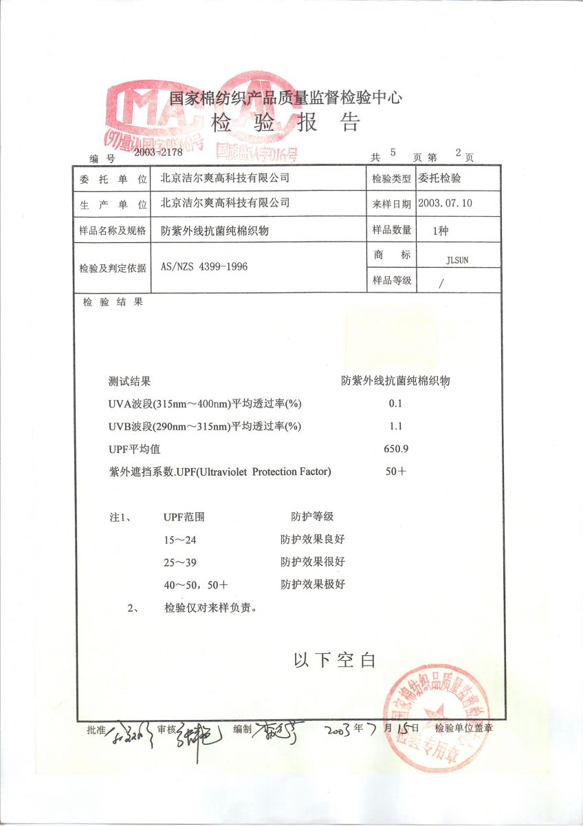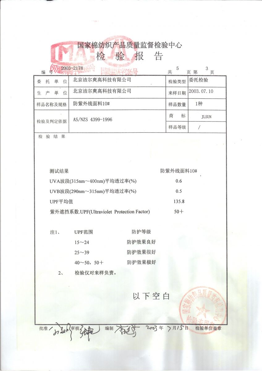 防紫外線(xiàn)整理劑測(cè)試報(bào)告(澳大利亞ARP;國(guó)家棉紡織品質(zhì)量監(jiān)督檢測(cè)中心;紡織工業(yè)南方測(cè)試中心)